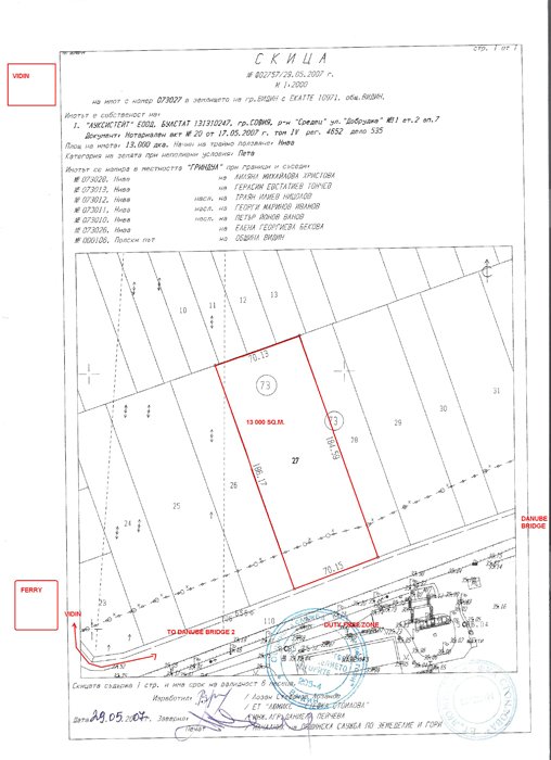 The plot is located on the main road leading from Vidin to the new bridge on Danube river.